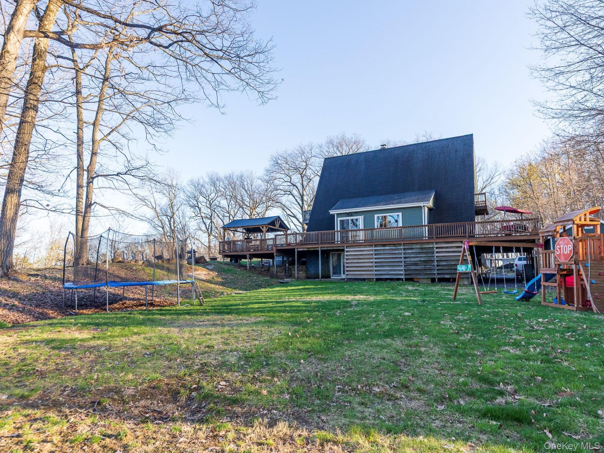Welcome home to this beautiful 3,700+ sqft. A-frame nestled on a quiet cul-de-sac in the Town of Newburgh. Located in a quiet neighborhood yet just minutes from shopping, dinning, transportation, and local recreation, this home offers both convenience and tranquility. With four comfortable bedrooms-featuring at least one bedroom and bath on every floor-there's plenty of space and flexibility . The primary suite includes a large walk-in closet and a private balcony with lovely mountain views and beautiful sunrises. Outside, enjoy a spacious yard for play and entertaining. A wrap-around deck with a gazebo, above-ground pool and cozy fire pit make it easy to host gatherings, relax, or simply enjoy the outdoors. The fully finished walk-out basement adds even more living space, complete with a wet bar and exercise area-ideal for movie nights, game days, or get-togethers. This inviting home truly has something for everyone, offering comfort, character, and room to grow.