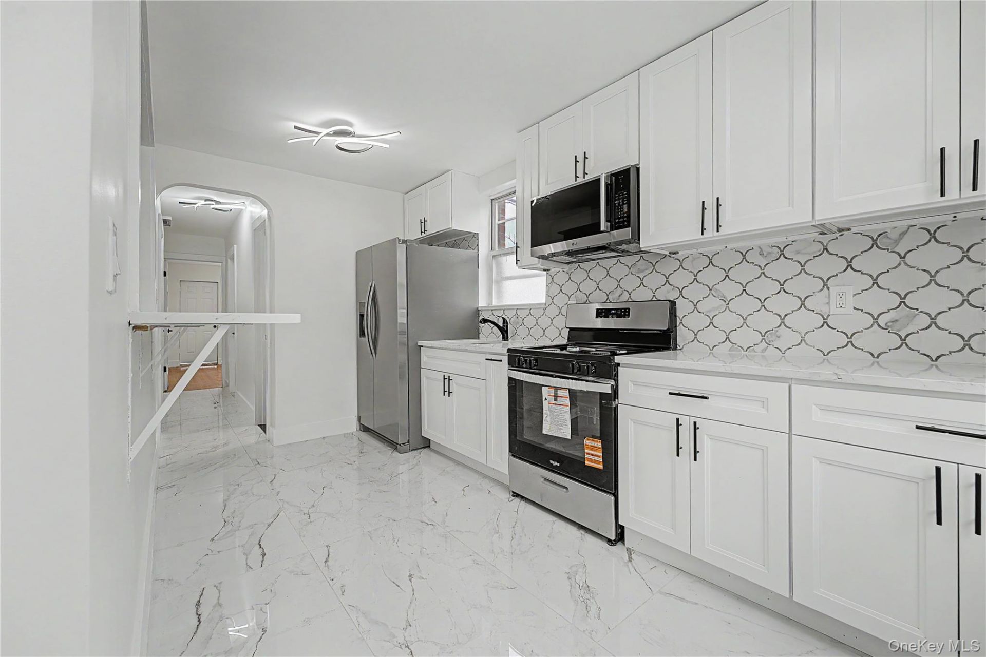 Experience modern living in this fully renovated Brooklyn home, thoughtfully designed with high-end finishes and versatile living space throughout.This residence features a 2-bedroom, 2-bathroom layout, complemented by a fully finished ground-level basement offering additional multi-use rooms and a second bathroom-ideal for extended living, work-from-home setups, or guest accommodations.The main level showcases a bright open-concept layout with sleek flooring, recessed lighting, and a seamless flow perfect for everyday comfort and entertaining. The designer kitchen is equipped with modern cabinetry, premium countertops, and stainless steel appliances, delivering both style and functionality.Both bathrooms are finished with clean, modern detailing, offering a spa-like feel with elegant tilework and contemporary fixtures.The lower level expands the home's functionality, featuring multiple additional rooms that can be customized to fit your lifestyle needs.Step outside to a private pavered backyard, perfect for barbecues, hosting events, and outdoor gatherings.With a brand-new roof and full renovation throughout, this home is truly turn-key and move-in ready.