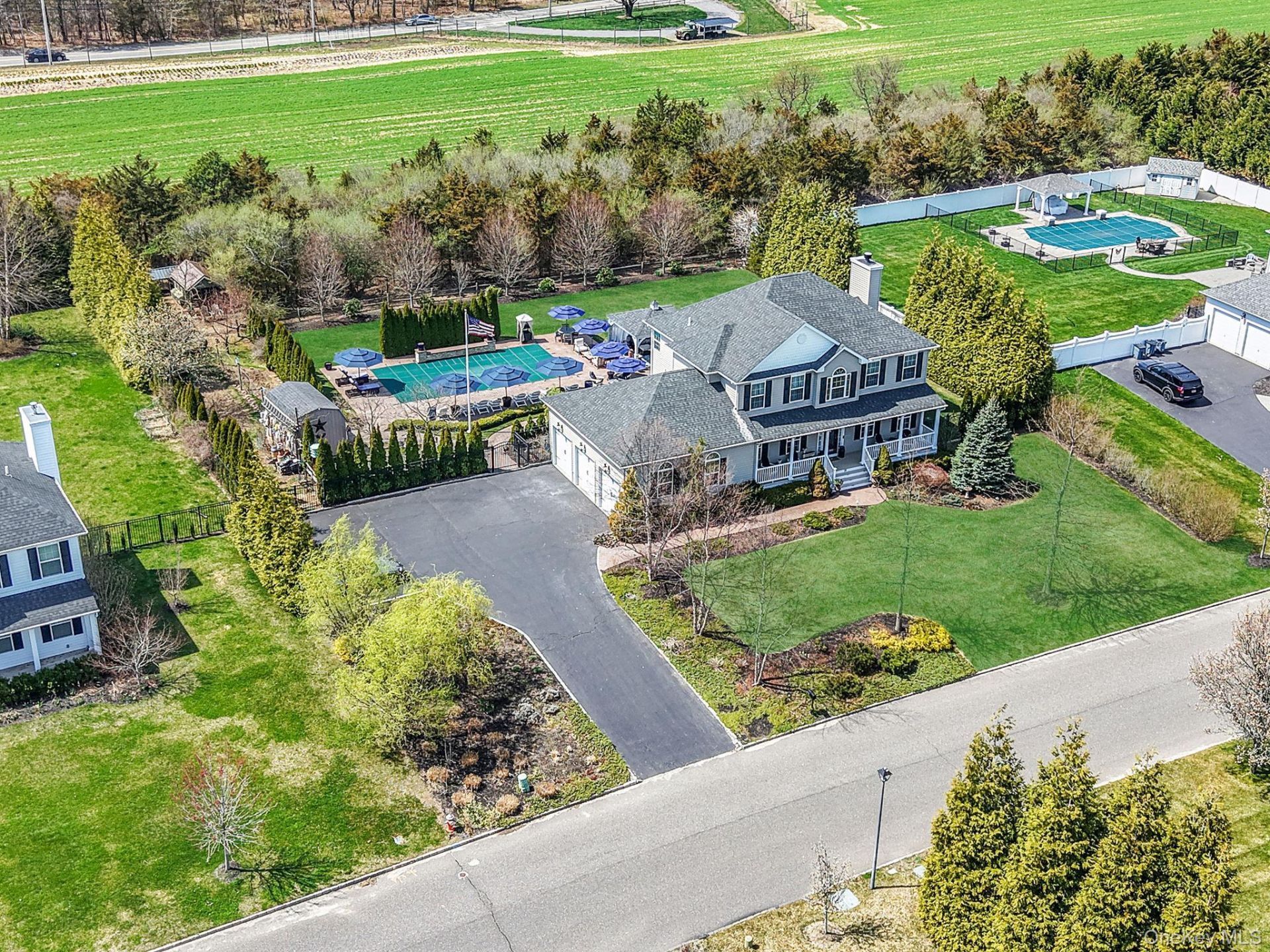 Location! Location! Welcome to this Stunning picture perfect Sun-Filled 4 Bedroom, 2.5 Bath Colonial nestled in the heart of the desirable Birchwood Community in Wading River. This stunning custom-built Jamesport Model offers exceptional craftsmanship, upscale finishes, and a spacious open floor plan designed for both luxurious everyday living and effortless entertaining.From the moment you arrive, you are greeted by beautifully landscaped grounds, striking curb appeal, and an impressive 3-car garage with lift, accommodating up to 4 cars. Step inside to discover hardwood floors, custom doors and moldings, soaring ceilings, elegant custom chandeliers, and hi-hat lighting throughout, all enhancing the home's bright and sophisticated ambiance.The heart of the home is the gourmet eat-in kitchen, thoughtfully designed for the culinary enthusiast and entertainer alike. This spectacular space features quartz countertops, a massive 10-foot center island with built-in microwave, Stainless steel farmhouse sink, pot filler, Viking gas cooking with oven and range, three ovens, two dishwashers, stainless steel appliances, wine cooler, garbage compactor, and a spacious pantry. Sliders from the kitchen lead directly to the backyard, seamlessly blending indoor and outdoor living.The inviting living area showcases a beautiful wood-burning fireplace with a gorgeous cased mantel, creating a warm and elegant focal point within the home's expansive open-concept layout. Generously sized bedrooms provide comfort and flexibility, including a spacious primary suite complete with a walk-in closet. The beautifully updated bathrooms offer modern style and refined finishes throughout.Additional interior highlights include a full unfinished basement offering endless potential, as well as hardwired security features for added peace of mind.Step outside to your own private backyard retreat, where resort-style living awaits. The fully fenced yard is surrounded by mature evergreen privacy trees and features an 18x36 heated in-ground saltwater pool with two waterfalls, a paver patio, pergola, shed, and abundant space for outdoor entertaining or peaceful relaxation, with its very own vegetable garden.Perfectly located, this extraordinary home combines luxury, comfort, and exceptional amenities in one remarkable package.Don't miss this rare opportunity to own a truly one-of-a-kind property in Wading River. This home won't last!